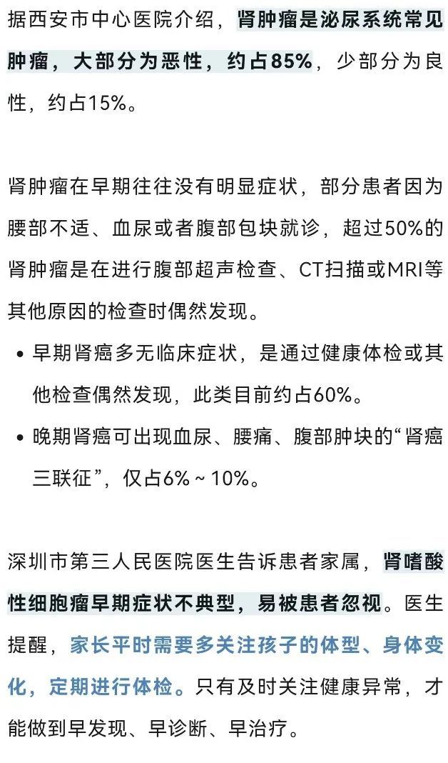 青少年肾肿瘤隐匿性强