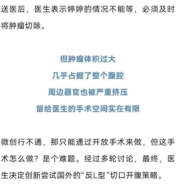 深圳市第三人民医院肾移植二科主任胡红星表示,肿瘤已经到了肚脐的下缘,就是后腹直肌外侧,这种情况需安全地把肿瘤切除,不要把肿瘤搞破,是我们首先要考虑的问题。